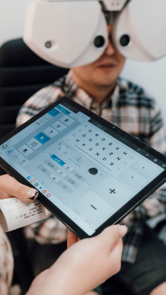 Zaczynamy od precyzyjnego badania, które jest kompleksową kontrolą zdrowia Twoich oczu. To jednak dopiero początek. Przeprowadzamy szczegółowy wywiad, aby zrozumieć, jak żyjesz – gdzie pracujesz, jak często prowadzisz auto, co robisz w wolnym czasie. To pozwala nam dobrać idealną konstrukcję soczewki progresywnej dla Ciebie.